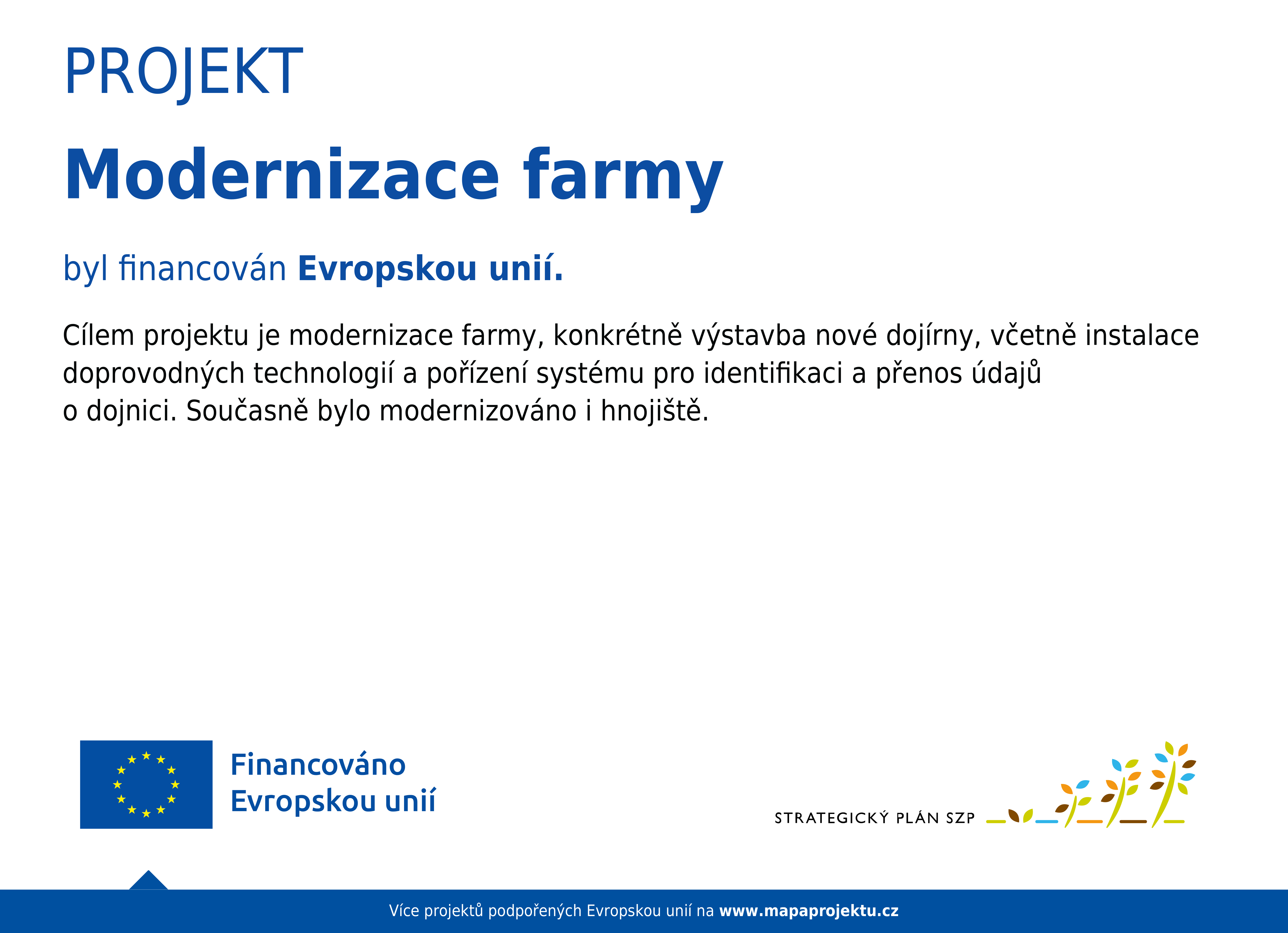 Ve spolupráci s Evropskou unií jsme realizovali projekt s názvem Výstavba nové dojírny.