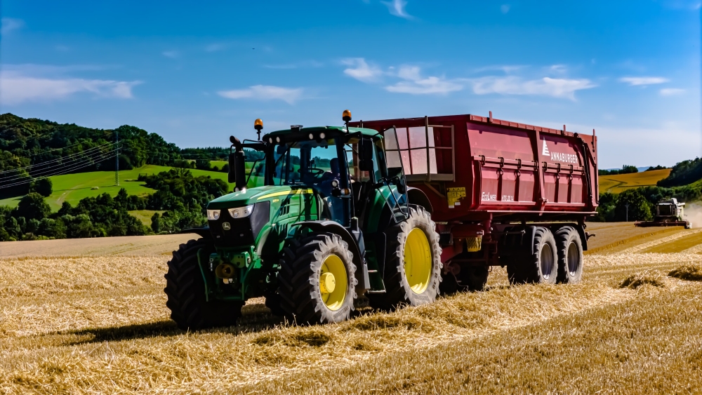 4 velkoobjemové korby ANABURGER, rozmetadlo a cisternu na odvoz kejdy, 3 nakladače JCB, žací lištu KRONE a pásový shrnovač KUHN Merge Maxx 950 a řadu strojů na zpracování půdy. Moderní stroje využíváme nejen pro
