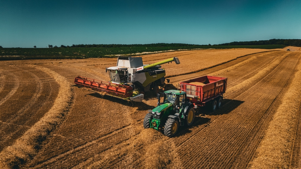 Výměra osevních ploch: pšenice 28 %, ječmen 18 %, žito potravinářské 3 %, kukuřice na zrno 3 %, řepka 14 %, cukrovka 9 %, hrách 5 % a 20 % krmné plodiny pro skot.